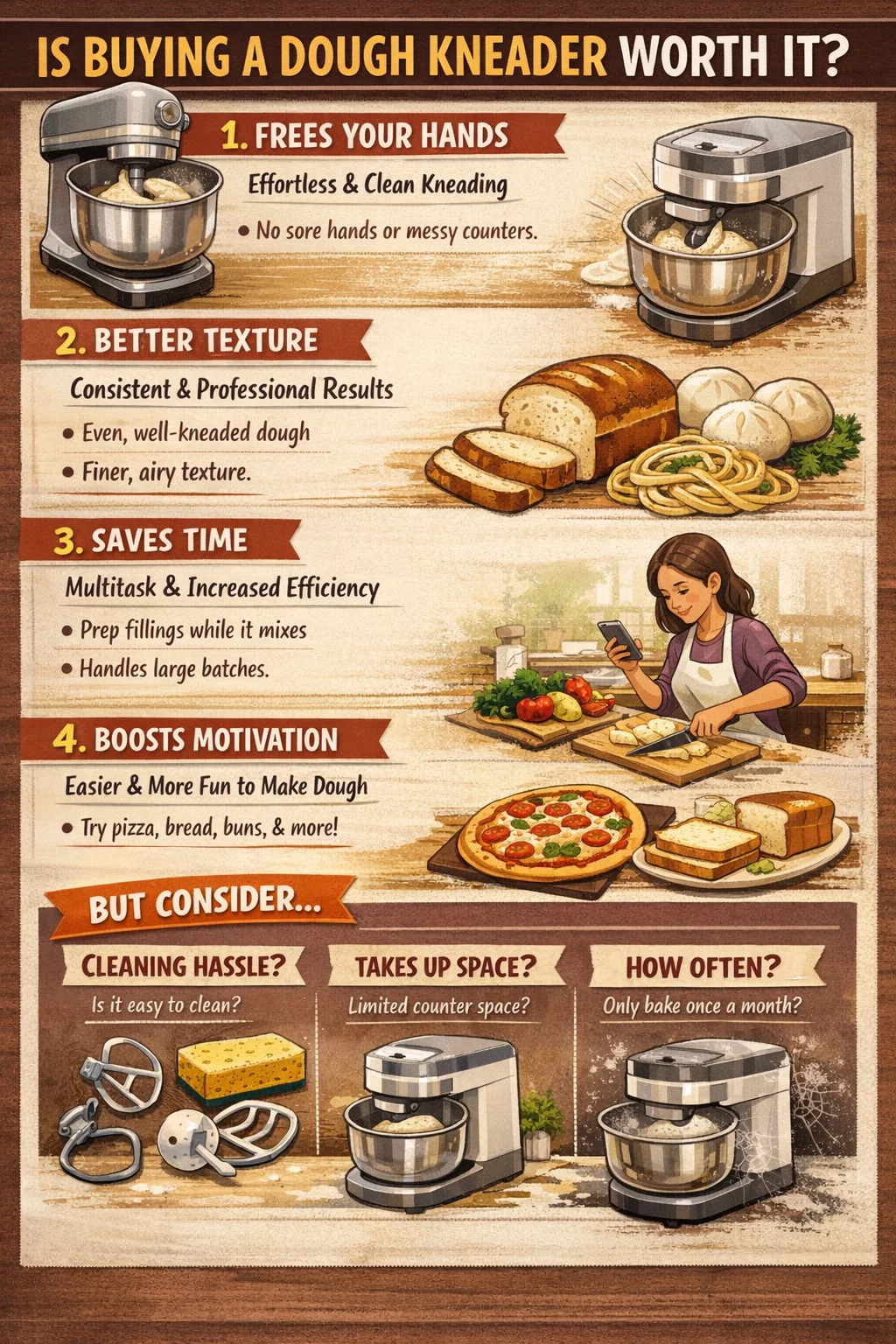 Ostaa taikinaa vaivaaja todella sen arvoista? Se riippuu pääasiassa siitä, kuinka paljon pidät pastan valmistamisesta ja kuinka paljon arvostat aikaasi. Se on kuin astianpesukone tai robottipölynimuri – joidenkin mielestä se on hengenpelastaja, kun taas toisten mielestä se vain vie tilaa.